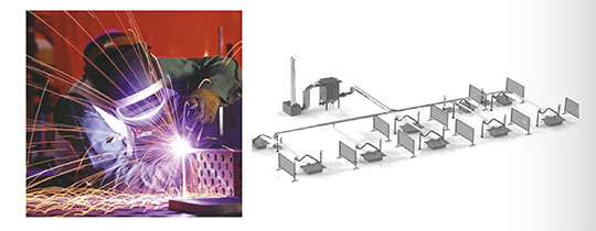 車(chē)間產(chǎn)生的煙塵由捕集裝置瞬間捕集收集后,經(jīng)采用漸變管徑式(目的是平衡管路末端風(fēng)速風(fēng)量)的主管道進(jìn)入除塵器,煙塵在除塵器內(nèi)被高效凈化濾件阻截凈化,顆粒物在風(fēng)機(jī)負(fù)壓作用下附著在濾件外側(cè),脈沖閥在控制儀的控制下,每隔一定時(shí)間,自動(dòng)對(duì)系統(tǒng)濾件由里至外進(jìn)行反吹清灰,反吹過(guò)程中顆粒物落入灰斗內(nèi)收集,灰斗內(nèi)積累到一定量的顆粒物后,需要外運(yùn)處理。在風(fēng)機(jī)的作用下。凈化后的達(dá)標(biāo)氣體由煙囪排出。