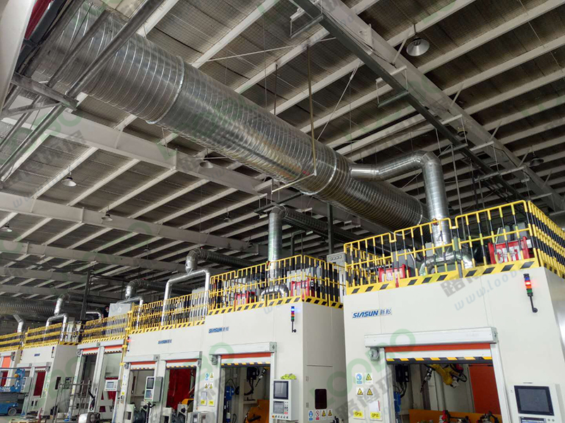 本焊接煙塵凈化項目具體情況是:所需焊接除塵區域共40余個焊接點,其中包含機器人焊接房工位、直縫焊接工位、手工焊接工位及激光焊接工位,設計共采用2套除塵系統,凈化后的煙氣室外達標排放。
